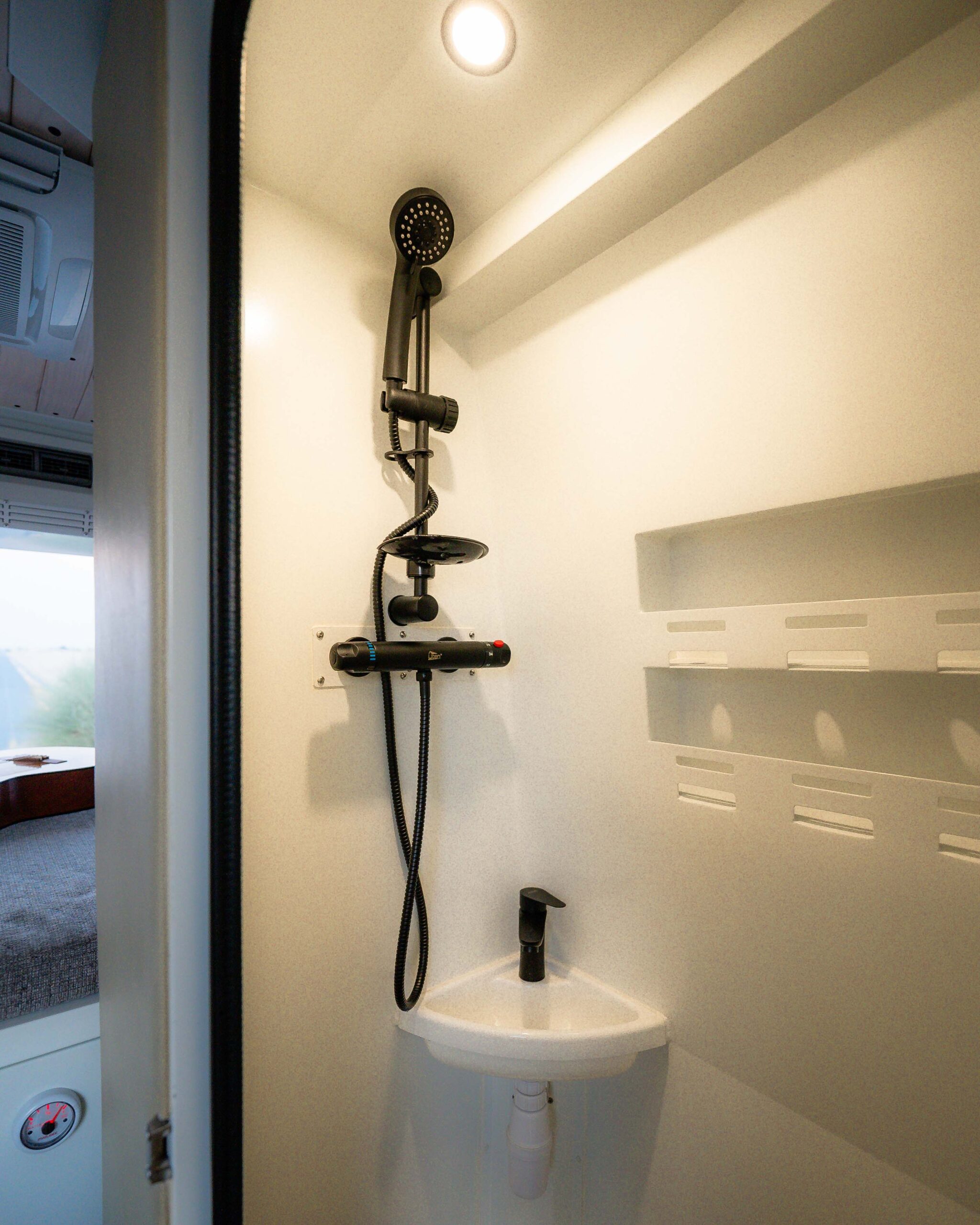 • Shower & Toilet (American style, gravity) with black tank